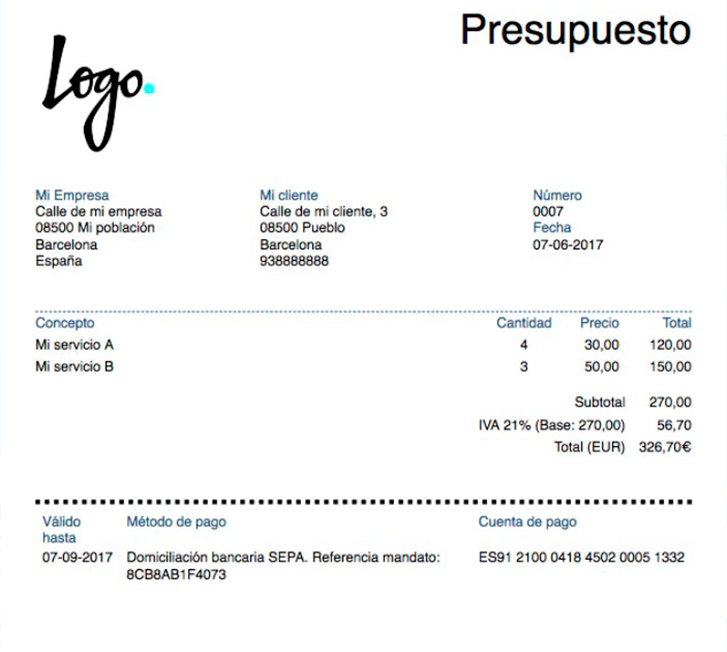 Personalizamos tu plantilla para crear presupuestos y facturas profesionales, listas para imprimir o enviar online.